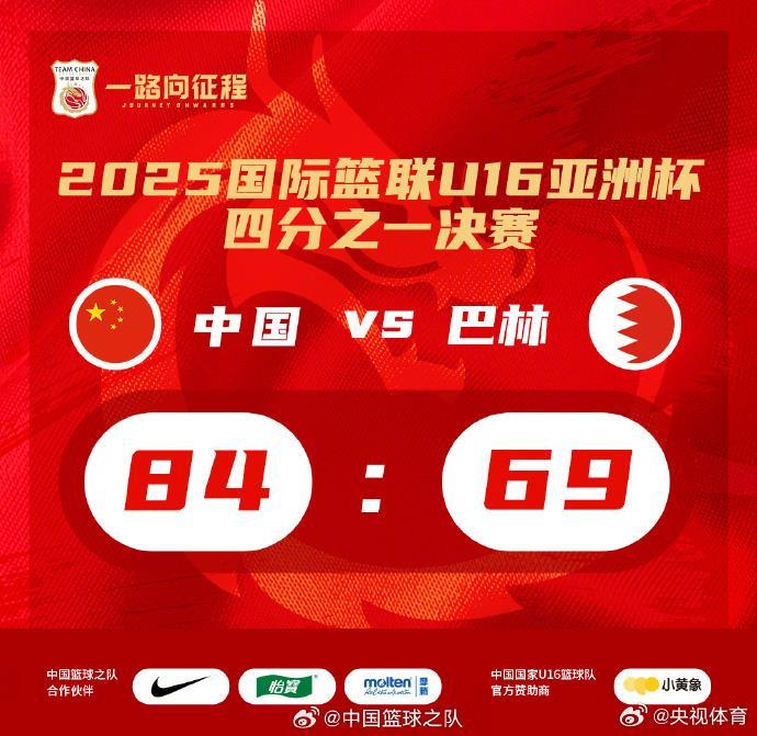 国际篮联U16男篮亚洲杯1/4决赛,中国84-69战胜巴林,成功晋级四强,同时锁定U17世界杯的参赛资格。