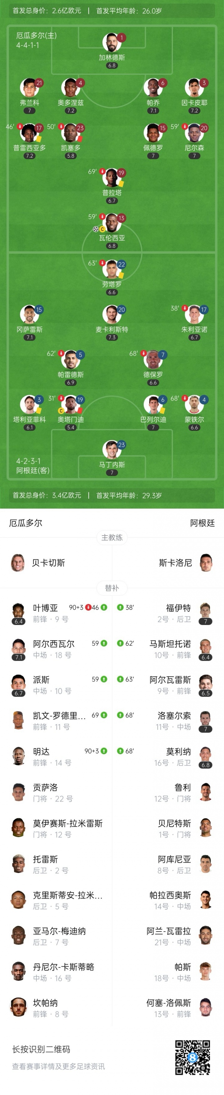 厄瓜多尔目前FIFA排名第25,全队身价3.3亿欧,阵中坐拥身价9000万欧的切尔西兽腰凯塞多、身价6500万欧的巴黎主力中卫帕乔、身价5000万欧的阿森纳新援因卡皮耶和身价3000万欧的米兰新援埃斯图皮尼安。